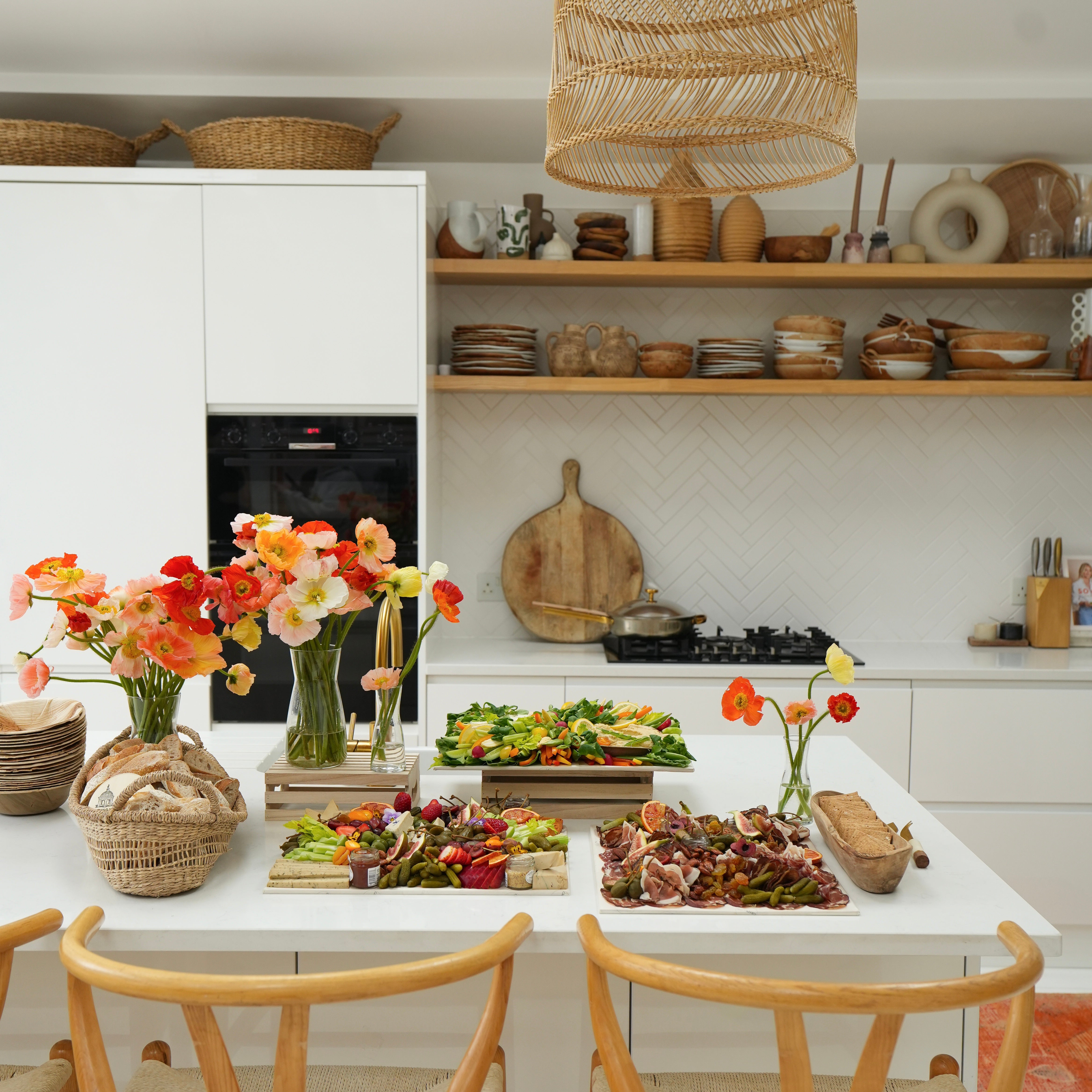 This kit (which you keep!) includes 6 wooden stackers, 8 pre-arranged foliage/floral vases & our styling guide!