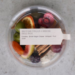 British Vegan Cheese Deli Pots contain: GLUTEN, SOYBEANS, SULPHUR DIOXIDE & SULPHITES, TREENUTS (VG)