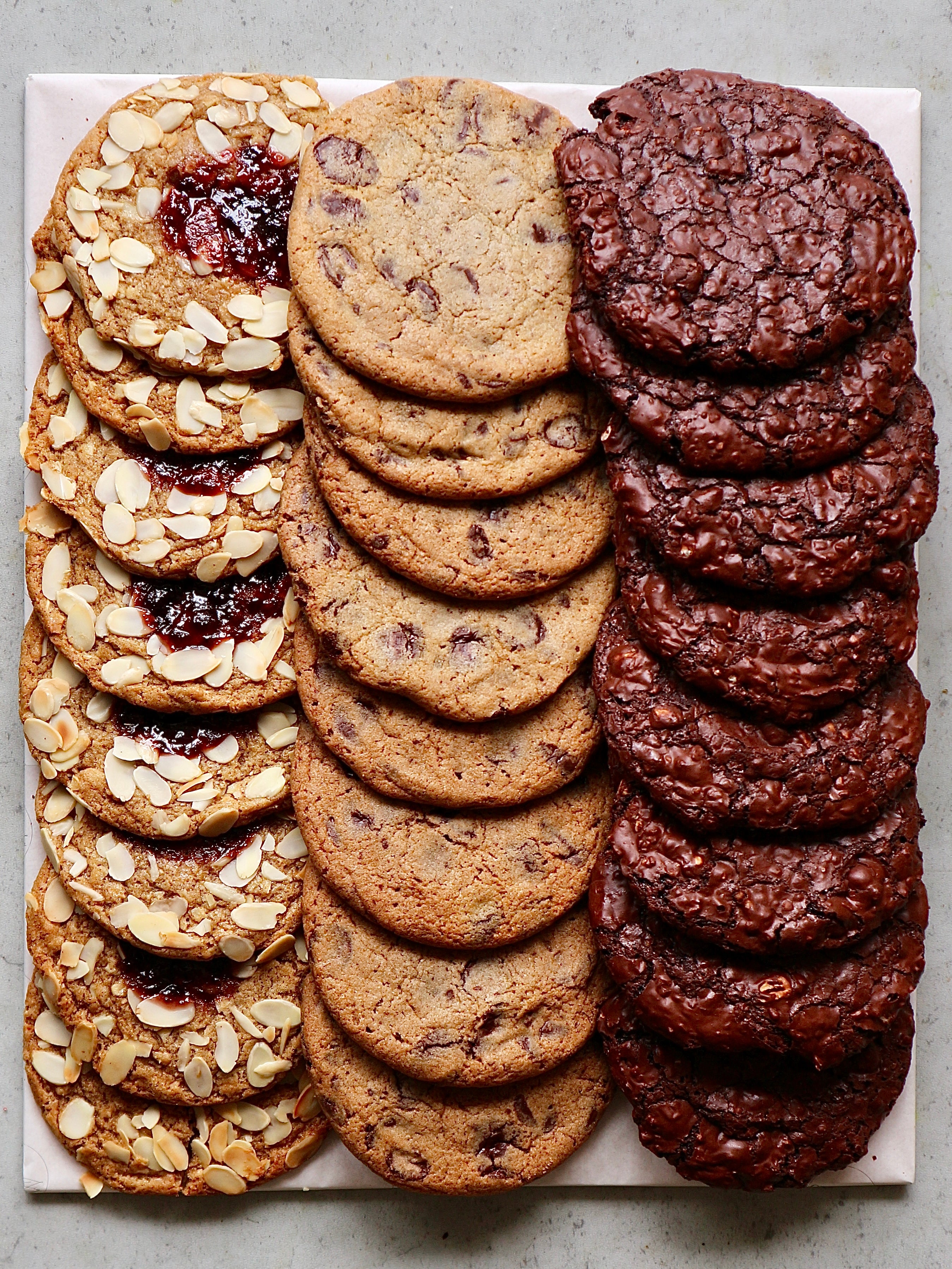 24 gorgeous cookies in a mix of Almond Butter & Cherry, Chocolate Chip, Chocolate & Hazelnut.