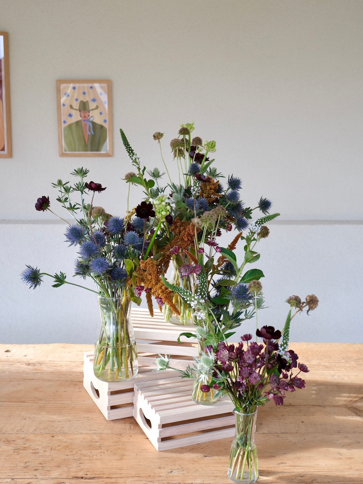 This kit (which you keep!) includes 3 wooden stackers, 4 pre-arranged foliage/floral vases & our styling guide!