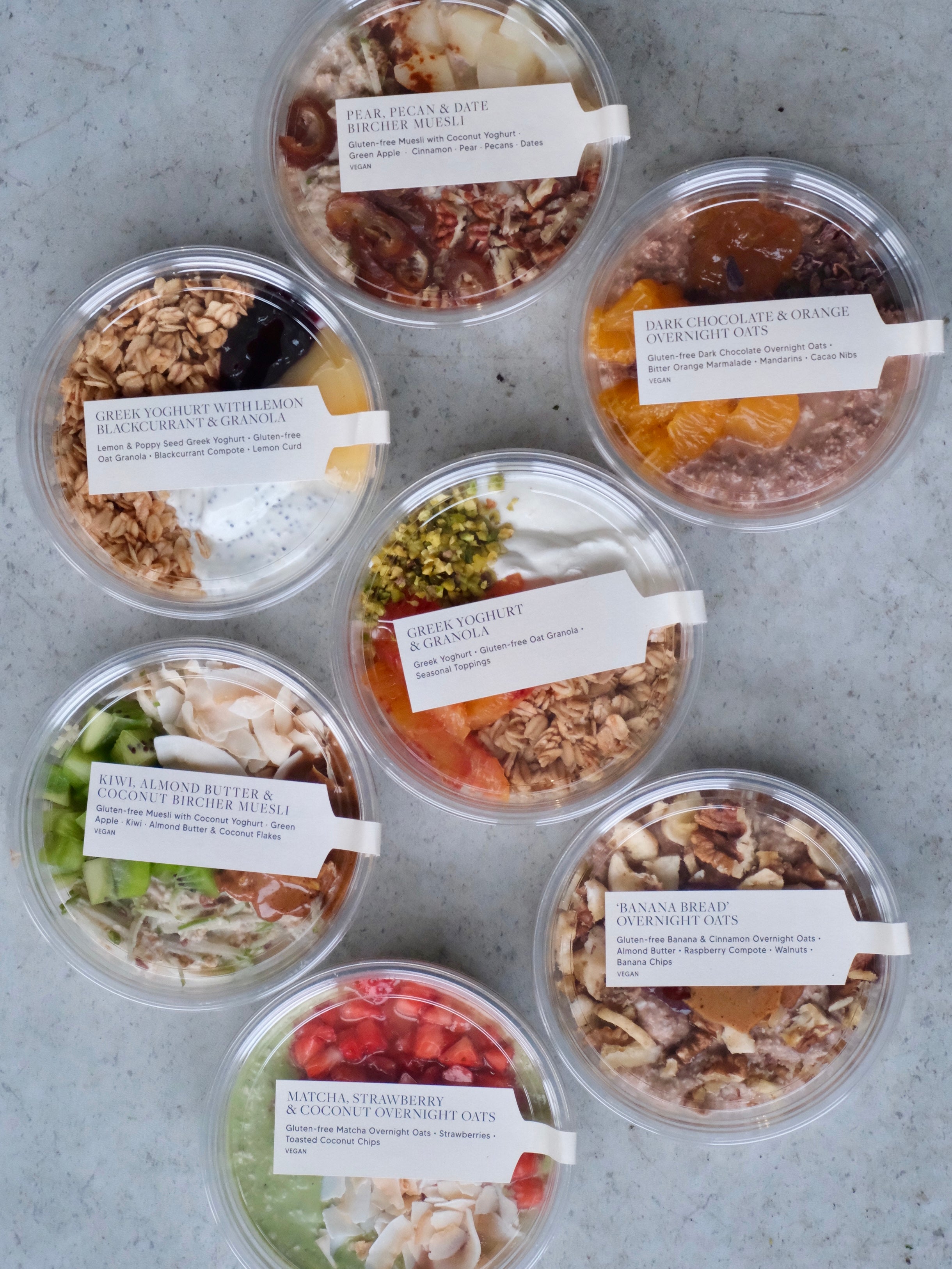 Yoghurt & Granola, Overnight Oats & Bircher Muesli Pots (x10)
